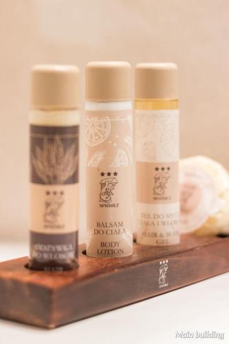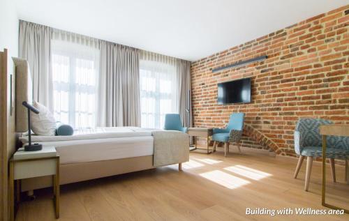 Rooms, reception and the restaurant are set in the one of the renovated granaries, while some other rooms and a wellness zone are set in the burgher tenement house located on the opposite side of the street. Guests at the hotel have free access to the wellness zone with sauna, gym and a seating area.