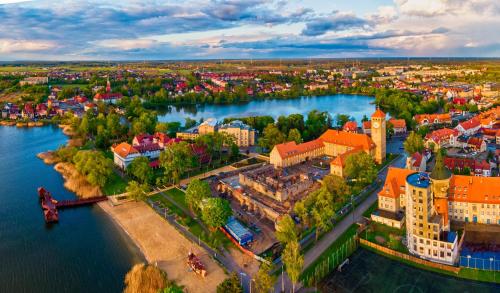 Mazury Szczytno - Apartamenty u Krzyżaka - Centrum se může pochlubit výhledem na město a poskytuje ubytování s barem a balkonem. Olsztyn Stadium se nachází přibližně 47 km odtud. V tomto apartmánu je dostupné bezplatné Wi-Fi. Olsztyn Bus Station se nachází 49 km odtud a Townhall of Mragowo 46 km.