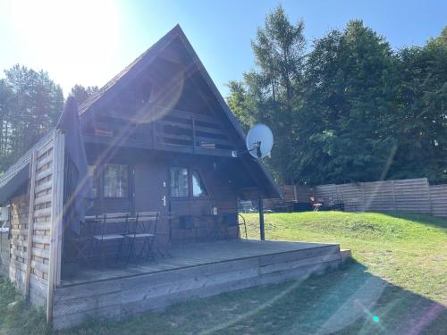 V ubytování Rajskie Pluski Slow Life nad jeziorem budete mít k dispozici dětské hřiště.