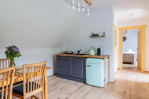 V ubytování budete mít k dispozici kuchyň s jídelní částí a vlastní koupelnu s fénem a sprchou. K dispozici je také lednice, varná deska, kávovar a varná konvice.