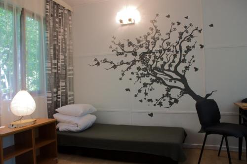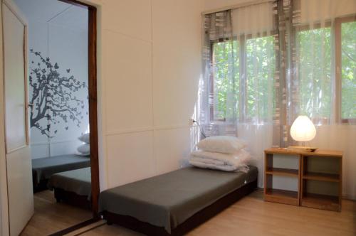 There is also a kitchenette, equipped with a refrigerator and stovetop. Every unit is equipped with a private bathroom with a shower.