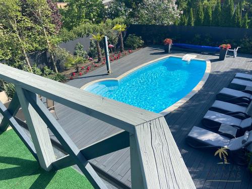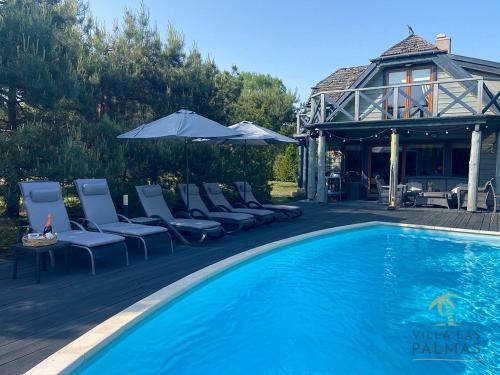 Villa Las Palmas se nachází v destinaci Matyldów a poskytuje sezónní venkovní bazén, sdílený lounge, terasu a ubytování s bezplatným Wi-Fi a výhledem do zahrady. Tento prázdninový dům nabízí soukromý bazén, zahradu, neplacené soukromé parkoviště a možnost vlastního stravování.