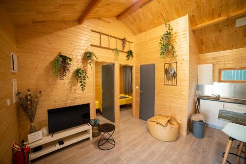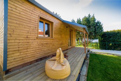 Tento prázdninový dům s klimatizací má 2 ložnice, kuchyňský kout s kompletním vybavením a terasu s výhledem do zahrady.