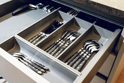 Tento apartmán má 2 ložnice, 2 koupelny, kuchyň s kompletním vybavením včetně jídelní části a lednice a obývací prostor s TV. Apartmán má také koupelnu.