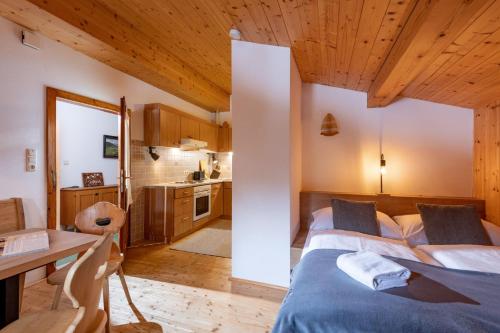 Všechny ubytovací jednotky se mohou pochlubit terasou s výhledem na hory a mají TV s plochou obrazovkou, posezení, kuchyň s dobrým vybavením a vlastní koupelnu s fénem. K dispozici je také lednice, trouba, varná deska, kávovar a varná konvice.