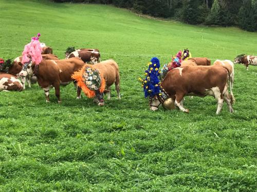 Všechny pokoje v ubytování Au Pension mají psací stůl, TV s plochou obrazovkou, vlastní koupelnu, ložní prádlo, ručníky a balkon s výhledem na hory. Vybavení všech pokojů zahrnuje kávovar a některé pokoje zahrnují také kuchyň s lednicí, myčkou nádobí a troubou. Všechny pokoje mají šatní skříň a varnou konvici.