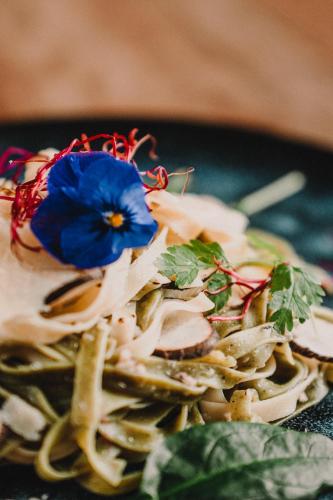 Na místě si můžete pochutnat na snídani formou bufetu, vegetariánské snídani nebo veganské snídani.