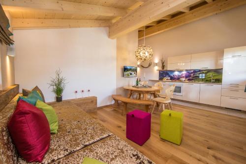 V roce 2013 byl tento 400 let starý statek kompletně přestavěn přírodními materiály a část dřeva starého statku byla znovu použita v interiéru. Moderní a tradičně zařízené apartmány mají balkon s výhledem na hory, kabelovou TV s plochou obrazovkou, koupelnu a plně vybavenou kuchyň s kávovarem Nespresso, toustovačem a rychlovarnou konvicí.