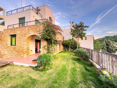 Blue Bay Villa se může pochlubit výhledem na moře a nabízí ubytování s terasou a balkonem. Stadion Panthessaliko se nachází přibližně 13 km odtud. Ubytování poskytuje zahradu a neplacené soukromé parkoviště. Pláž Marathos se nachází 800 metrů odtud.