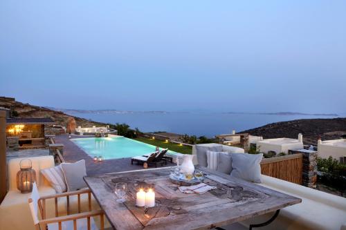 Diles & Rinies se nachází v destinaci Tinos a nabízí venkovní bazén, zahradu, terasu, bar, vybavení pro grilování a výhled na moře. V ubytování je dostupné Wi-Fi zdarma ve všech prostorách a na místě je k dispozici soukromé parkoviště.