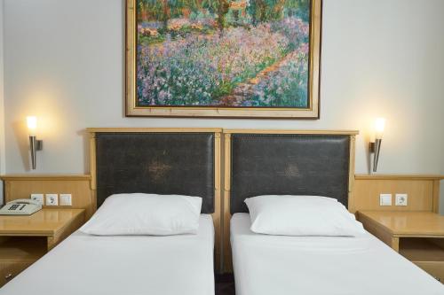 Pokoje v hotelu Iris jsou moderně zařízené a mají koberce, TV, telefon, koupelnu s toaletními potřebami a fénem a lednici. Na vyžádání je dostupná služba večerní přípravy pokoje.