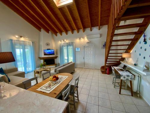Pláž Megali Ammos se nachází 1,9 km od ubytování Villa Azure a Skiathos přístav 4,1 km od ubytování. Letiště Skiathos leží 6 km daleko.