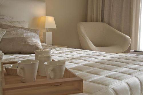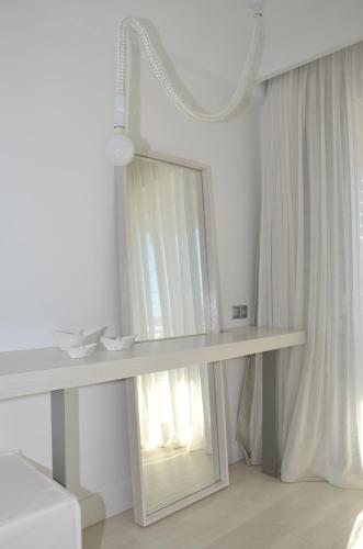 Ino Village má stylové pokoje v uklidňujících barvách s minibarem, fénem a toaletními potřebami Mastic Spa zdarma. Některé pokoje mají výhled na moře nebo bazén.