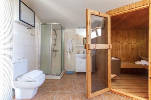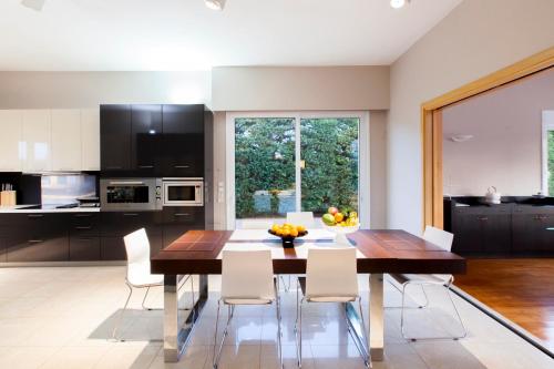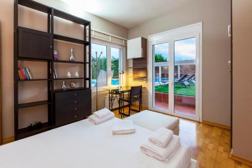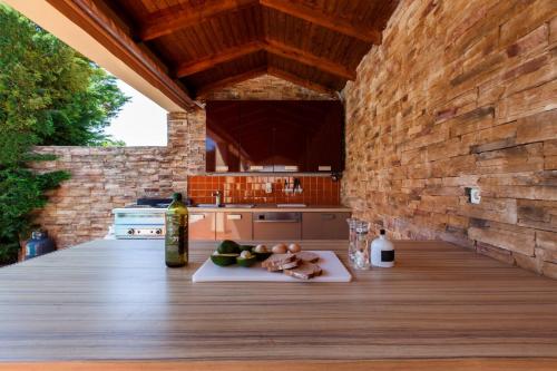 Tato vila má 5 ložnice, 5 koupelny, ložní prádlo, ručníky, TV s plochou obrazovkou se satelitními programy, jídelní část a kuchyň s kompletním vybavením. Může se pochlubit také terasou s výhledem na bazén. Koupelna je vybavená sprchou, vanou a fénem.