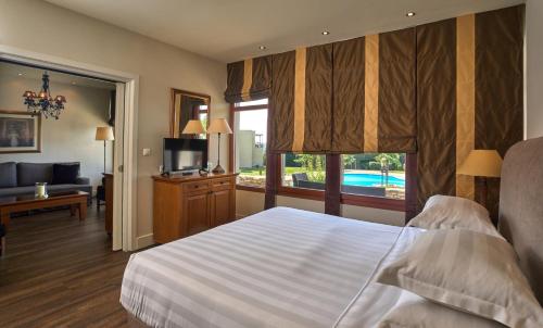 Overlooking the city of Volos, the Pagasetic Gulf and Mount Pilion, Xenia Palace Portaria features a spa-health club, an outdoor pool surrounded by a furnished sun terrace, and a playground. The classically decorated rooms come with free WiFi access and flat-screen TVs.