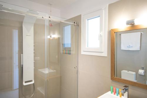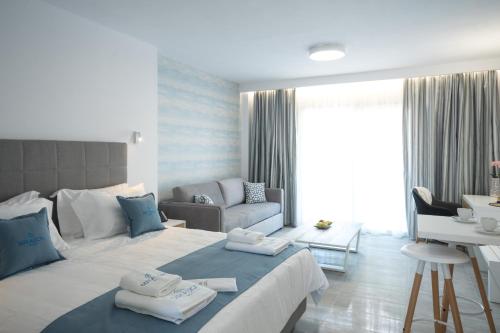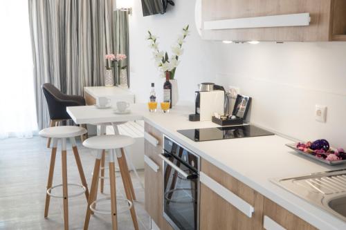 Hotel Defkalion se nachází v destinaci Petra a poskytuje venkovní bazén, fitness centrum, zahradu, sdílený lounge, terasu a výhled na moře.
