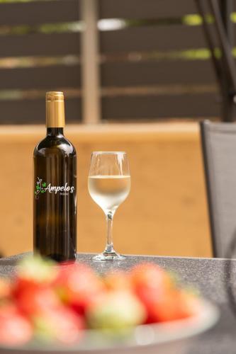 Ampelos nabízí zahradu, terasu a ubytování s klimatizací, patiem a bezplatným Wi-Fi. Limnoupolis se nachází 3,5 km odtud. Na místě je k dispozici soukromé parkoviště.