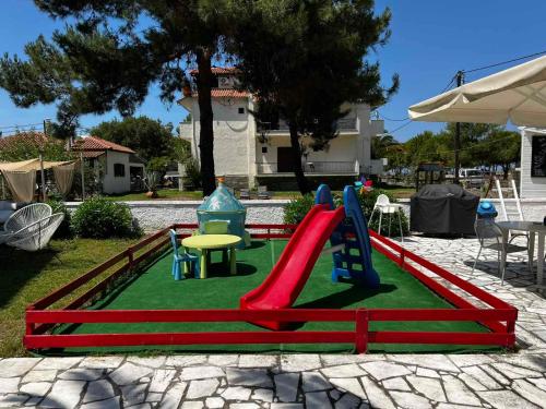 K dispozici je také sdílený lounge s pohovkami a TV. Pro mladší hosty je připraveno dětské hřiště.