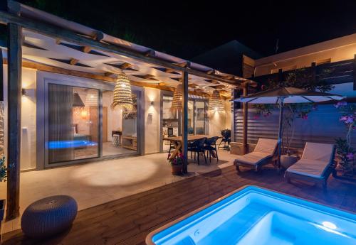 The Cave Villa nabízí venkovní bazén, terasu a ubytování s klimatizací, patiem a bezplatným Wi-Fi. Pláž Matala se nachází 1 km odtud. Na místě je k dispozici soukromé parkoviště.