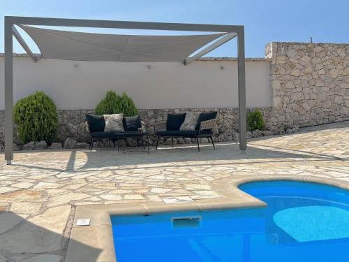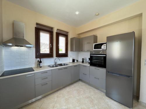 Villa Fiscardo View Fiscardo Kefalonia se nachází v obci Mánganos a nabízí venkovní bazén. Ubytování má klimatizaci, balkon a terasu. K dispozici je plně vybavená kuchyň s myčkou nádobí a mikrovlnnou troubou. Ve vlastní koupelně najdete sprchu nebo vanu a fén. Výhled směřuje na moře a hory.