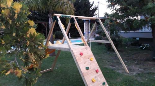 Vedle celoročně otevřeného bazénu poskytuje Villa Oneiro také dětské hřiště a sdílený louge.