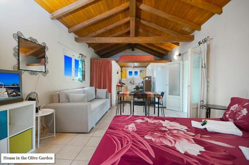 House in the Olive Garden se může pochlubit výhledem na hory a nabízí ubytování s terasou a balkonem. Kostel Panagia Vlaherna se nachází přibližně 7,9 km odtud. Tento apartmán má zahradu, venkovní gril, bezplatné Wi-Fi, neplacené soukromé parkoviště a možnost vlastního stravování.