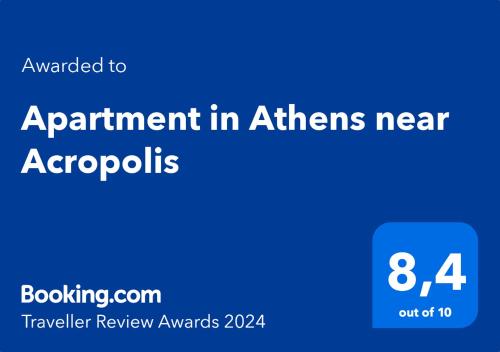 Apartment in Athens near Acropolis se nachází v Aténách a poskytuje ubytování s bezplatným Wi-Fi a TV s plochou obrazovkou. Pahorek Múz se nachází 1,2 km odtud a Keramikos stanice metra 1,4 km. Ódeion Héroda Attika se nachází 1,3 km od tohoto apartmánu a Chrám Héfaisteion 1,6 km.