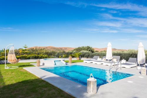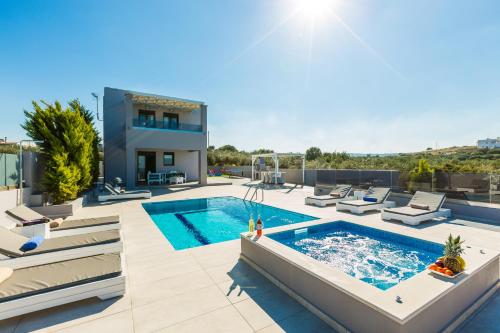 Evangelos Villas, lavish touch, By ThinkVilla se nachází v destinaci Angeliana a nabízí bazén, zahradu, terasu a výhled na moře. V ubytování je dostupné bezplatné Wi-Fi. Na místě je k dispozici soukromé parkoviště.