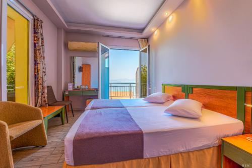 Castella Beach s výhledem na záliv Patraikos se nachází přímo na pláži Alissos. Hosté mohou zdarma využívat lehátka na pláži a většina pokojů má vlastní balkon s výhledem na moře.