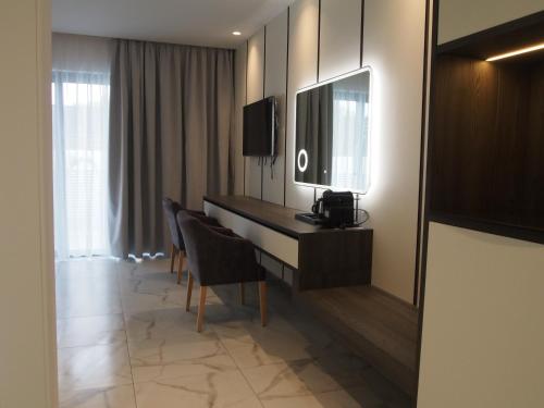 Pokoje jsou vybaveny klimatizací, TV s plochou obrazovkou se satelitními programy, varnou konvicí, sprchou, bezplatnými toaletními potřebami a psacím stolem. Pokoje v ubytování Oros Paradise Hotel mají vlastní koupelnu s fénem a k dispozici je v nich také bezplatné Wi-Fi. Některé pokoje mají také balkon. Všechny pokoje v ubytování Oros Paradise Hotel mají v ceně ložní prádlo a ručníky.
