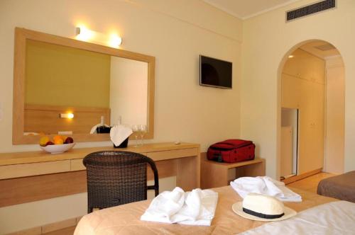 Philoxenia se nachází v destinaci Ermones a poskytuje ubytování s zahradou, neplaceným soukromým parkovištěm, terasou a barem. Pláž Ermones je 300 metrů daleko. Toto ubytování nabízí nepřetržitě otevřenou recepci, restauraci a venkovní bazén. Toto ubytování nabízí přepážku s turistickými informacemi a bezplatné Wi-Fi ve všech prostorách.