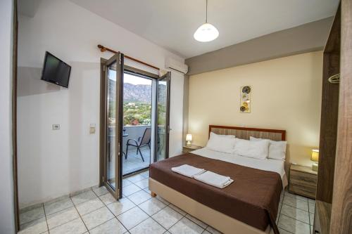 Panorama nabízí sezónní venkovní bazén, zahradu a ubytování s klimatizací, balkonem a bezplatným Wi-Fi. Pláž Stómio se nachází 1,9 km odtud. Na místě je k dispozici soukromé parkoviště.