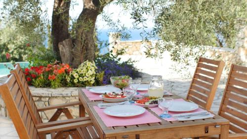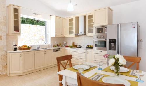 Vila má 2 ložnice, 2 koupelny, ložní prádlo, ručníky, TV, kuchyň s kompletním vybavením a terasu s výhledem na moře. Koupelna je vybavená sprchou a fénem.