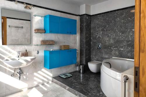 Tato vila s klimatizací má 5 ložnice, obývací prostor, kuchyň s kompletním vybavením včetně lednice a myčky nádobí a 5 koupelny. Koupelna je vybavená sprchou a bezplatnými toaletními potřebami. K dispozici jsou i ručníky a ložní prádlo.