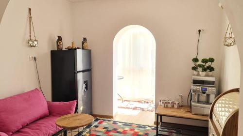 The spacious apartment features a balcony, 1 bedroom, a living room and a well-equipped kitchen. A flat-screen TV is featured.