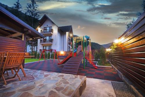 Vila Moldavia Class má také gril. Pro děti je připraveno venkovní hřiště.