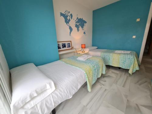 Atico con gran terraza y barbacoa en Zahara má 2 ložnice s klimatizací a kuchyň s kompletním vybavením včetně mikrovlnné trouby.