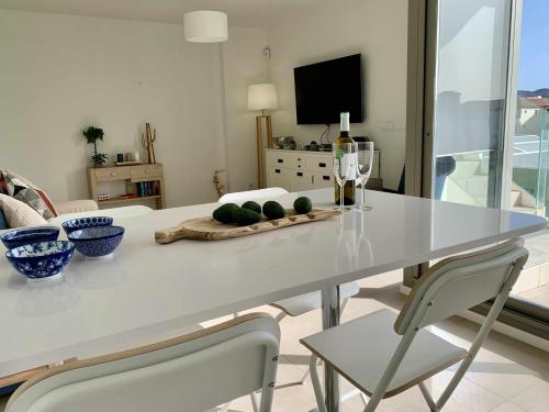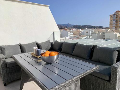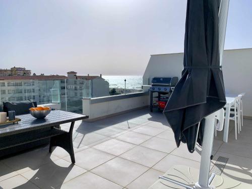 Elegant penthouse with sea views in Torrox se nachází v destinaci Torrox a nabízí sezónní venkovní bazén, zahradu, terasu a ubytování s bezplatným Wi-Fi a výhledem na moře. Tento apartmán s klimatizací poskytuje balkon.