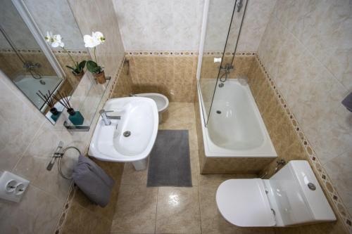 Tento apartmán s klimatizací má 1 ložnici, kuchyň s kompletním vybavením včetně lednice a mikrovlnné trouby a 1 koupelnu. Koupelna je vybavená vanou a fénem. K dispozici jsou i ručníky a ložní prádlo.