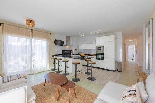 The spacious apartment with a terrace and mountain views features 3 bedrooms, a living room, a flat-screen TV, an equipped kitchen with a dishwasher and an oven, and 2 bathrooms with a bath. Towels and bed linen are provided in the apartment. The property has an outdoor dining area.