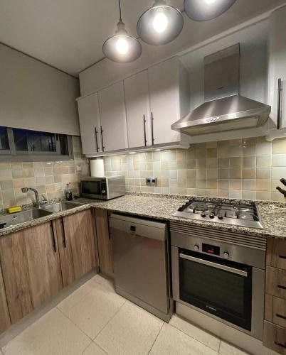 Tento apartmán s klimatizací má 3 ložnice, obývací prostor, kuchyň s kompletním vybavením včetně lednice a myčky nádobí a 2 koupelny. Koupelna je vybavená vanou a fénem. K dispozici jsou i ručníky a ložní prádlo.