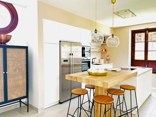 Tato vila s klimatizací má 7 ložnice, kuchyň s kompletním vybavením včetně lednice a myčky nádobí a 7 koupelny. Koupelna je vybavená sprchou a fénem. K dispozici jsou i ručníky a ložní prádlo.
