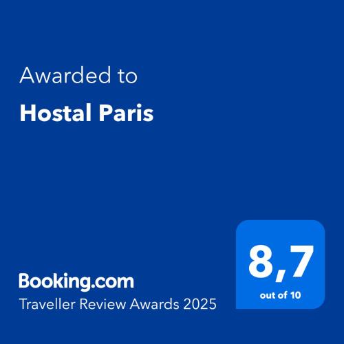 Hostal Paris má jednoduše a atraktivně zařízené pokoje s klimatizací a dřevěnými podlahami. Všechny pokoje mají TV s plochou obrazovkou, lednici a toaletní potřeby zdarma.