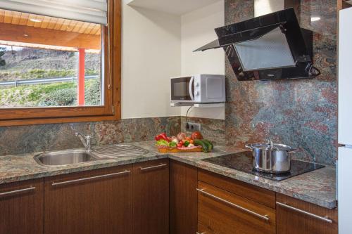 The holiday home with a terrace and mountain views has 3 bedrooms, a living room, a flat-screen TV, an equipped kitchen with a dishwasher and an oven, and 2 bathrooms with a hot tub. Towels and bed linen are available in the holiday home. For added privacy, the accommodation has a private entrance and soundproofing.