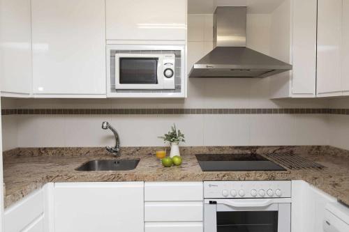 Tento apartmán má 2 ložnice, kuchyň s kompletním vybavením včetně lednice a myčky nádobí a 2 koupelny s sprchou. Tento apartmán nabízí také posezení, pračku a koupelnu s fénem.