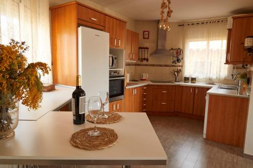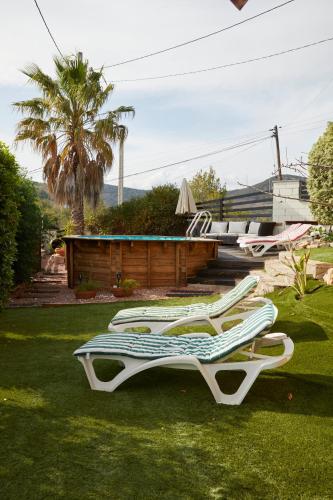 Tento prázdninový dům má 2 ložnice, 1 koupelnu, ložní prádlo, ručníky, TV s plochou obrazovkou se satelitními programy, jídelní část a kuchyň s kompletním vybavením. Může se pochlubit také terasou s výhledem na hory. Tento prázdninový dům s klimatizací nabízí také posezení, pračku a koupelnu s bezplatnými toaletními potřebami.