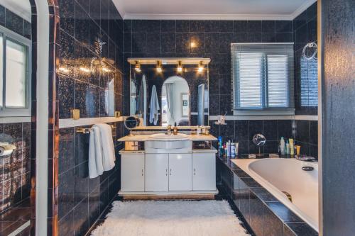 Vila má 4 ložnice, 4 koupelny, ložní prádlo, ručníky, TV s plochou obrazovkou, kuchyň s kompletním vybavením a terasu s výhledem do zahrady. K dispozici je i koupelna s fénem.