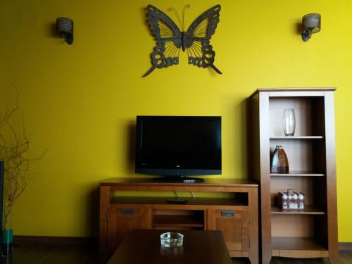 Venkovský dům má TV s plochou obrazovkou. K vybavení kuchyňského koutu patří lednice, mikrovlnná trouba, varná deska a kávovar.
