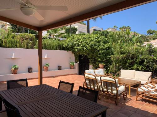 Mayarí se nachází v destinaci Moraira a nabízí venkovní bazén, zahradu, terasu a ubytování s bezplatným Wi-Fi a výhledem na hory. Tento prázdninový dům s klimatizací poskytuje patio.