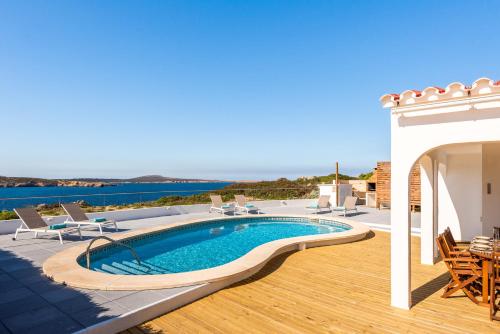 Villa Pilar se nachází v destinaci Es Mercadal a nabízí bezplatné Wi-Fi a výhled na moře. Pláž Platja Arenal d'en Castell se nachází jen 300 metrů daleko a Mahón přístav 20 km. Golf Son Parc Menorca se nachází 6,1 km od této vily a Mount Toro 21 km.